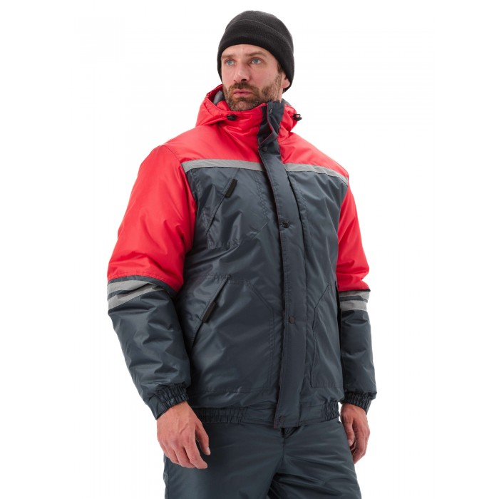Костюм зимний "СТИМ" куртка/полукомб. цвет: т.серый/красный